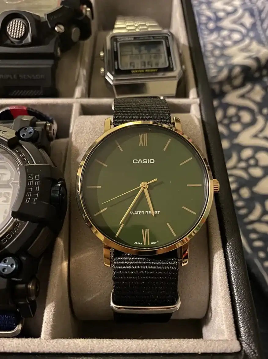 As some watches in the Casio brand are very popular here. I wanted to buy a unique one that is more minimalist / posh like. I stumbled across this watch on amazon with its great colour and subtleness. I've worn it everyday going out and have received compliments on it many times. For cost and quality, it's more than worth it!