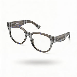 Gafas unisex clásicas de lujo BURBERRY con montura de acetato gris y lentes de policarbonato transparente de 53 mm