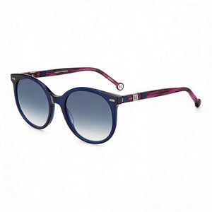 Gafas de sol Carolina Herrera Ch 0046/S para mujer, montura redonda de plástico azul oscuro transparente, protección UV azul violeta, 56 mm