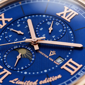 Adopte la sofisticación atemporal con el reloj Christian Van Sant para hombre, con una llamativa esfera azul que capta todas las miradas. Diseñado para el hombre moderno, su resistencia al agua le garantiza estar siempre preparado, sin importar adónde lo lleve su viaje.