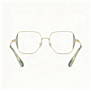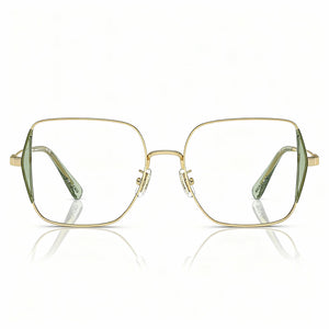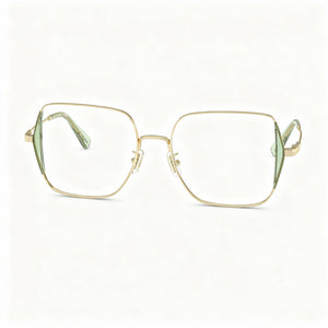 - Chic Oversized Square Design - Make a sophisticated fashion statement with an elegant shiny light gold frame and subtle green accents.