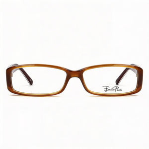 Montura de gafas Emilio Pucci unisex de plástico marrón claro, montura rectangular moderna con lentes personalizables de 53 mm.