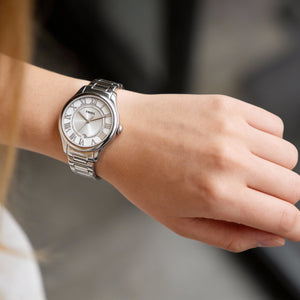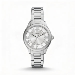 Reloj Fossil Gilmore de cuarzo para mujer, con pulsera de acero inoxidable plateada y números romanos de 38 mm.
