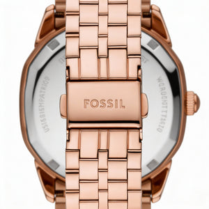 Reloj Fossil Harlow para mujer de 27 mm con pulsera de acero inoxidable en oro rosa, resistente a arañazos y golpes.