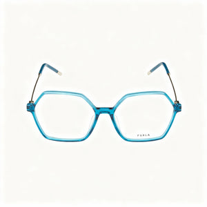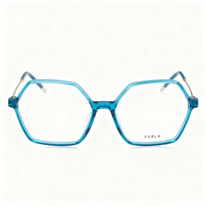 Furla VFU636 Women's Modern Geometric Full Rim Acetate Eyeglasses, Transparent Sky Blue, 54mm
