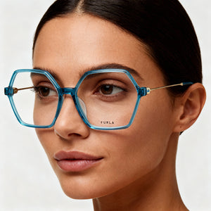Discover the art of refined vision with Furla's Modern eyeglasses, where the delicate Transparent Sky Blue acetate frame becomes a statement of effortless elegance. Crafted for the contemporary woman, these frames promise a seamless fusion of sophisticated style and brilliant clarity for every facet of your day.