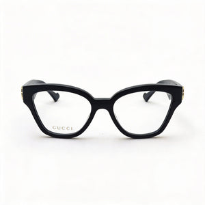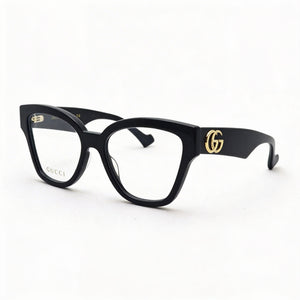 Gucci GG1424O 005 Montura completa ojo de gato para mujer, acetato reciclado negro y dorado, ancho de lente: 54 mm