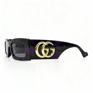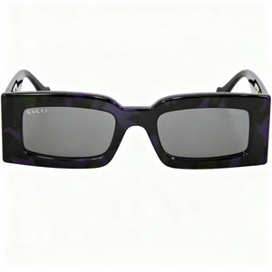 Unleash your inner icon with these Gucci Rectangular sunglasses, where the captivating blend of Havana, purple, and green frames creates an unforgettable statement. Meticulously crafted from luxurious acetate and adorned with signature gleaming logos, they offer 100% UV protection through sleek gray lenses, ensuring both peerless style and essential clarity.