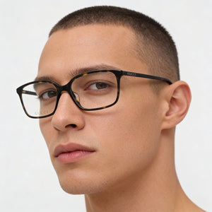 Realza tu look diario con la innegable sofisticación de Gucci. Diseñadas para el hombre exigente, sus clásicas monturas Havana y lentes transparentes personalizables ofrecen la fusión perfecta de elegancia atemporal y comodidad personalizada.