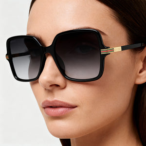 - Make a bold statement with an oversized squared frame from Gucci, crafted from sustainable recycled acetate for an eco-conscious touch of luxury.