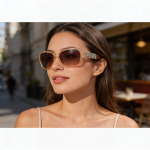 Adopta tu estilo audaz y realza cada look con las cautivadoras gafas de sol GUESS GF0395 para mujer. Sus elegantes monturas en beige brillante y ahumado degradado, elaboradas con una construcción premium, ofrecen protección UV esencial y marcan tendencia.
