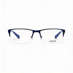 Montura de gafas ópticas unisex Guess Gu1892 C54 en metal azul mate, diseñadas con un ancho de lente de 54 mm.