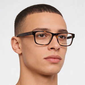Gafas GUESS Gu50018 de diseño para hombre, montura de plástico color Havana oscuro con lentes de policarbonato de 52 mm