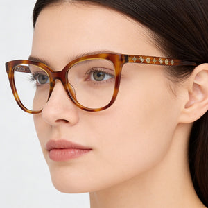 • El duradero marco OFTÁLMICO DE PLÁSTICO en un elegante color rubio Habana ofrece un uso duradero y un aspecto atemporal y moderno.