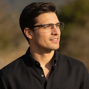 • Fabricado con un marco de metal duradero, presentado en un distintivo acabado en rutenio claro mate y negro brillante para una estética atemporal.