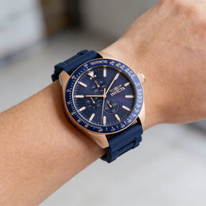 Experimente la fusión perfecta de elegancia clásica y funcionalidad versátil con el Invicta Aviator. Este impactante reloj de oro rosa, impulsado por un preciso movimiento de cuarzo, está diseñado para realzar su estilo personal con una sofisticación atemporal.