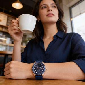 • **Impresionante esfera azul y caja de acero inoxidable:** Una caja de acero inoxidable de 45 mm enmarca una esfera azul atemporal, que ofrece un aspecto sofisticado que combina con cualquier atuendo.