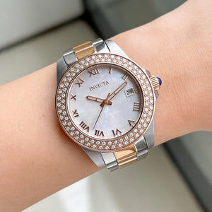 Reloj de cuarzo Invicta Angel 36076 para mujer, de 34 mm, con pulsera de acero inoxidable y esfera de nácar.