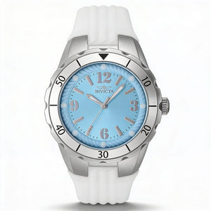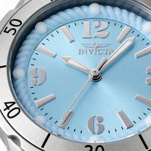 Adopte la sofisticación atemporal con el reloj Invicta Classic, diseñado para empoderar a la mujer moderna. Su elegante tono azul claro y su estilo clásico complementan a la perfección su elegancia única, haciendo brillar cada momento.