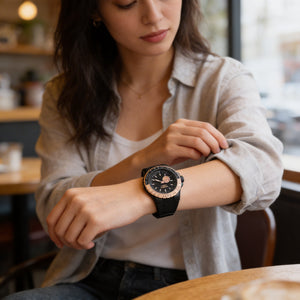 • Ajuste su hora sin esfuerzo con la corona intuitiva, diseñada para una operación rápida y un perfil de reloj elegante.