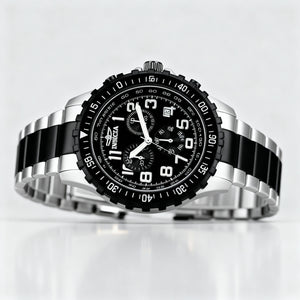 Command your day with the Invicta Chronograph, a bold statement in silver and black that exudes refined power. Experience impeccable craftsmanship and unwavering performance, meticulously engineered to conquer every challenge with style.