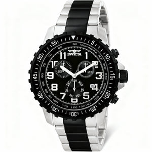 Invicta Chronograph Watch Men's Stainless Steel Flame-Fusion Crystal Silver Black 100M Water Resistant 45MM
