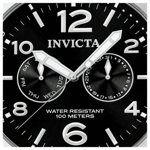 Llame la atención con el reloj Invicta Quartz Movement, una fusión de diseño robusto y precisión confiable. Su elegante estética negra, complementada con detalles que brillan en la oscuridad, garantiza que su presencia se note, de día y de noche.