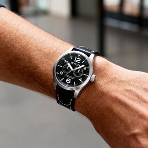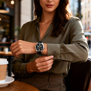 • **Estilo clásico y uso cómodo:** Cuenta con una elegante esfera negra y una correa de cuero negro genuino, que combina una estética atemporal con comodidad durante todo el día.