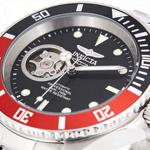 Reloj automático de buceo Invicta para hombre, de acero inoxidable, de 40 mm, caja plateada, movimiento japonés, esfera luminosa y corona atornillada.