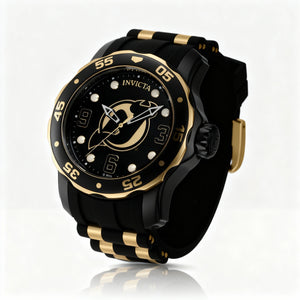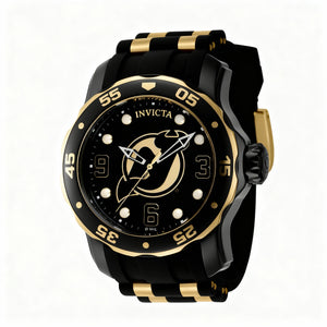 Invicta Men's 42310 NHL New Jersey Devils Quartz Watch, Black & Gold Stainless Steel Silicone, 48mm
