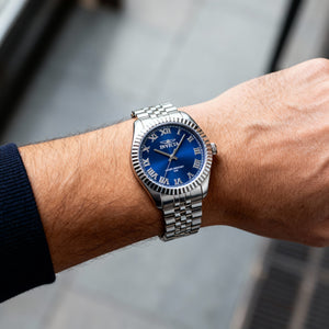 • Diseño elegante: cuenta con una caja de acero inoxidable de 36 mm en color plata con una llamativa esfera azul para una apariencia sofisticada y versátil.