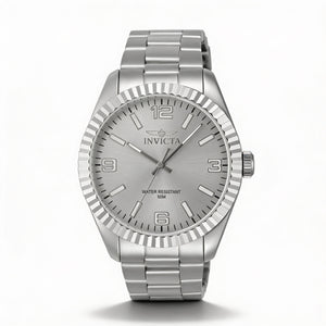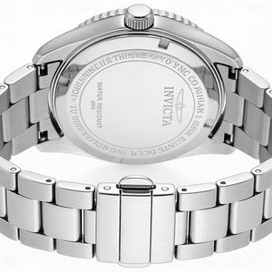 Realza tu estilo diario con el reloj de pulsera Invicta, un reloj que combina a la perfección un diseño sofisticado con una presencia impactante. Fabricado con una elegante caja y correa de acero inoxidable, y con resistencia al agua de hasta 50 metros, es el compañero perfecto para cualquier aventura.