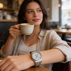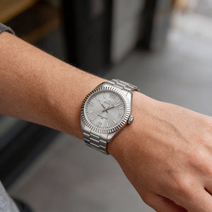 • Estética plateada elegante: con una llamativa esfera plateada y una elegante caja de acero inoxidable plateada, este reloj ofrece una apariencia sofisticada que complementa cualquier atuendo.