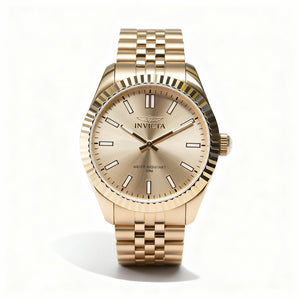 Descubra la combinación perfecta de sofisticación moderna y encanto clásico con este impresionante reloj Invicta. Sus radiantes detalles en oro rosa y su diseño versátil lo convierten en un accesorio esencial para cualquier persona exigente.