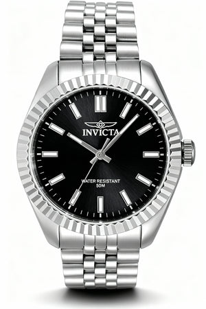 Reloj unisex Invicta Specialty 47494 de cuarzo, resistente al agua, de acero inoxidable plateado y esfera negra, de 36 mm