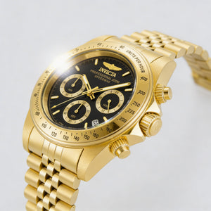 Reloj cronógrafo de cuarzo Invicta Speedway 31001 unisex de acero inoxidable en tono dorado con esfera negra de 39 mm, Photo 1