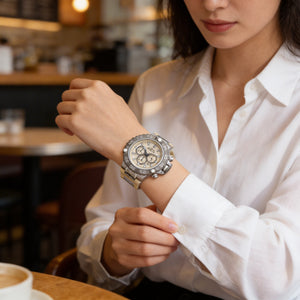 • Experimente un cronometraje preciso y confiable con el movimiento de cuarzo de alta precisión y la función de cronógrafo dedicada.