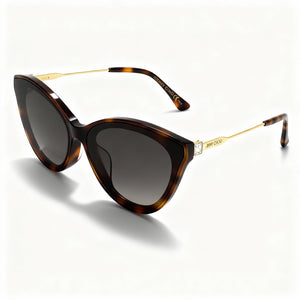 Command every room with the captivating allure of JIMMY CHOO Cat Eye sunglasses, crafted for the woman who defines her own spotlight. Indulge in luxurious Havana frames and chic Brown Gradient lenses, ensuring complete UV protection with every sophisticated glance.