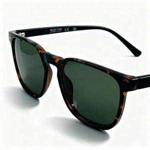 Kenneth Cole Reaction KC1414 Men's Soft Round Plastic Sunglasses, Dark Havana Frame, Green Lens, 54-17-150