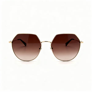 - Chic Longchamp Design - Elevate your look with a sophisticated Gold and Brown metal frame and a distinctive irregular shape.