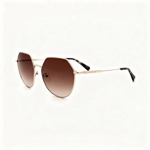 Longchamp LO154S Women's Gold Brown Metal Frame Irregular Non-Polarized Sunglasses 60mm