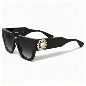 Command attention and exude effortless confidence with Moschino's exquisite Women's Metal Trim sunglasses. Crafted from sleek black acetate, their sophisticated dark grey shaded gradient lenses offer essential UV protection, blending undeniable glamour with practical luxury.