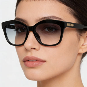 Realza tu estilo con el cautivador encanto de las gafas Cat Eye de Moschino, diseñadas para la mujer moderna. Estas elegantes monturas negras irradian un encanto sofisticado que realza tu personalidad única.