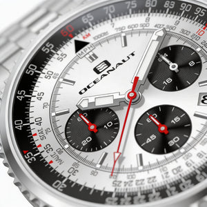 Reloj cronógrafo Oceanaut para hombre, esfera plateada, caja y pulsera de acero inoxidable, movimiento de cuarzo.