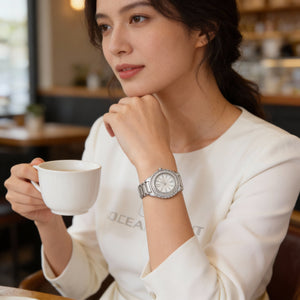Reloj Oceanaut para mujer con movimiento de cuarzo, esfera plateada, bisel de cristal, resistente al agua hasta 30 m, cristal mineral.