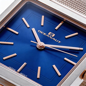 Reloj de cuarzo Oceanaut para mujer, acero inoxidable en oro rosa, esfera azul, resistente al agua y a los arañazos, mineral.