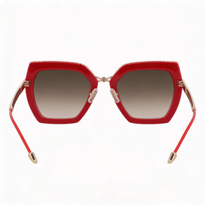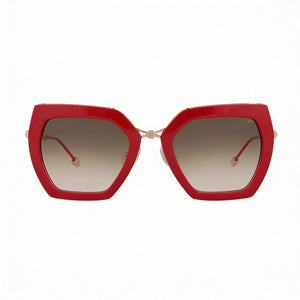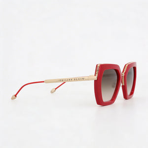 Unleash your inner rebel with Philipp Plein's captivating eyewear, crafted for the woman who commands attention. The striking red frames and sophisticated gradient brown/pink lenses are designed to empower your style and elevate every moment.