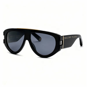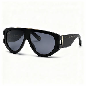 Philipp Plein SPP127M Men's Casual Shiny Black Cellulose Acetate Smoke Mirror Silver Sunglasses 60-13-145