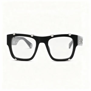 Philipp Plein VPP042W Classical Unisex Acetate Square Optical Glasses Non-Polarised Shiny Black 54mm