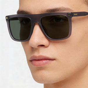 Gafas de sol Polaroid Casual Unisex de acetato polarizadas 100 % UV con montura gris y lentes verdes de 56 mm
